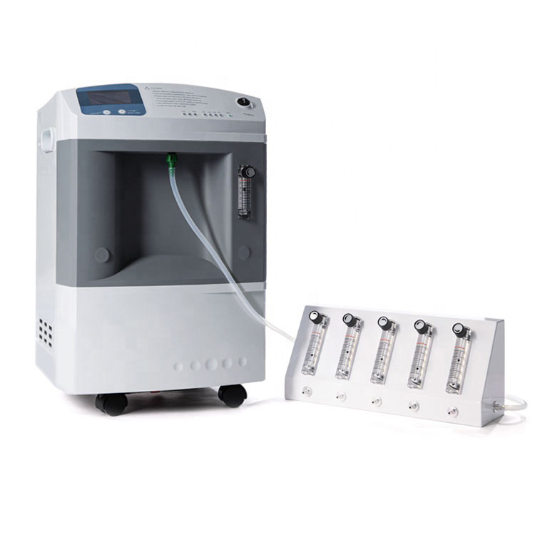 10L ਮੈਡੀਕਲ ਆਕਸੀਜਨ ਕੰਸੈਂਟਰੇਟਰ ਅੰਤਮ ਪ੍ਰਵਾਹ ਸਪਲਿਟ ਦੇ ਨਾਲ: ਫਲੋ ਸਪਲਿਟਰ ਇੱਕ ਯੰਤਰ ਹੈ ਜਿਸ ਦੁਆਰਾ ਇੱਕ ਇਨਲੇਟ ਵਿੱਚ ਆਕਸੀਜਨ ਨੂੰ ਕਈ ਪ੍ਰਵਾਹਾਂ ਵਿੱਚ ਵੰਡਿਆ ਜਾ ਸਕਦਾ ਹੈ ਤਾਂ ਜੋ ਇੱਕੋ ਸਮੇਂ ਵਿੱਚ ਹੋਰ ਮਰੀਜ਼ਾਂ ਨੂੰ ਸਾਹ ਲਿਆ ਜਾ ਸਕੇ। ਇਸ ਫਲੋ ਸਪਲਿਟਰ ਵਿੱਚ 5 ਫਲੋ ਮੀਟਰ ਫਲੋ ਨੌਬ ਨੂੰ ਐਡਜਸਟ ਕਰਕੇ ਸੁਤੰਤਰ ਜਾਂ ਇਕੱਠੇ ਕੰਮ ਕਰ ਸਕਦੇ ਹਨ। ਇੱਕ ਸਿੰਗਲ ਆਕਸੀਜਨ ਆਊਟਲੈਟ ਲਈ ਨਿਊਨਤਮ ਆਕਸੀਜਨ ਦਾ ਪ੍ਰਵਾਹ 0.125 L/Min ਹੋ ਸਕਦਾ ਹੈ।