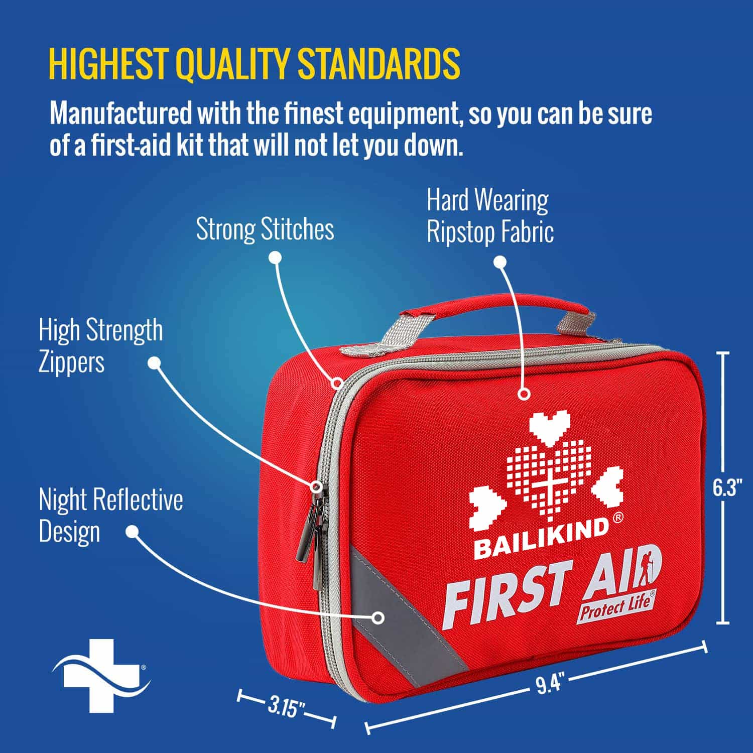ਕਾਰ ਲਈ 2-ਇਨ-1 ਫਸਟ ਏਡ ਬੈਗ ਦੀ ਵਿਸ਼ੇਸ਼ਤਾ: ਟਿਕਾਊ ਅਤੇ ਸੰਖੇਪ (9.4" x 6.3" x 3.15", ਦਾ ਭਾਰ ਸਿਰਫ਼ 1.46 ਪੌਂਡ ਹੈ)। ਇਹ ਮਜ਼ਬੂਤ ਅਤੇ ਚੁੱਕਣ ਵਿੱਚ ਆਸਾਨ ਹੈ, ਫਿਰ ਵੀ ਇਸ ਵਿੱਚ ਮੁੱਢਲੀ ਸਹਾਇਤਾ ਅਤੇ ਤਿਆਰੀ ਦੀਆਂ ਸਾਰੀਆਂ ਚੀਜ਼ਾਂ ਹਨ। ਅਤੇ ਇੱਕ ਬੋਨਸ ਛੋਟੀ ਕਿੱਟ। ਇਹ ਕਈ ਕੰਪਾਰਟਮੈਂਟਾਂ ਦੇ ਨਾਲ ਚੰਗੀ ਤਰ੍ਹਾਂ ਵਿਵਸਥਿਤ ਹੈ ਅਤੇ ਲੋੜ ਪੈਣ 'ਤੇ ਹੋਰ ਆਈਟਮਾਂ ਜੋੜਨ ਲਈ ਅਜੇ ਵੀ ਵਾਧੂ ਥਾਂ ਹੈ।