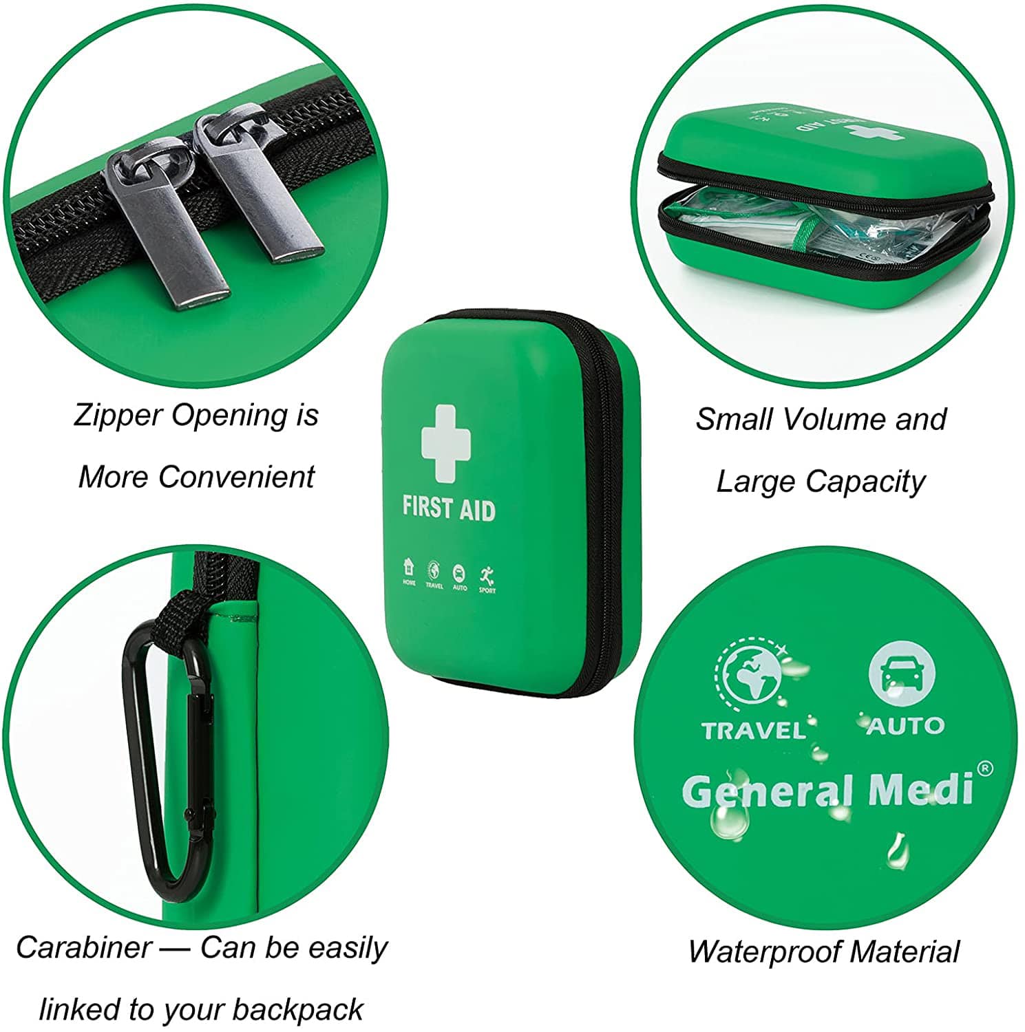 ਗ੍ਰੀਨ ਹਾਰਡ ਈਵੀਏ ਫਸਟ ਏਡ ਕਿੱਟ ਦੀ ਵਿਸ਼ੇਸ਼ਤਾ: ਹਰੇਕ ਅੰਦਰੂਨੀ ਸਲੀਵ ਸ਼੍ਰੇਣੀ ਦੁਆਰਾ ਵਿਵਸਥਿਤ ਕੀਤੀ ਜਾਂਦੀ ਹੈ। ਲੋੜ ਦੇ ਸਮੇਂ, ਤੁਰੰਤ ਸਹੀ ਚੀਜ਼ਾਂ ਪ੍ਰਾਪਤ ਕਰੋ। ਵਸਤੂਆਂ ਦੀ ਵਰਤੋਂ ਕਰਨ ਤੋਂ ਬਾਅਦ, ਆਸਾਨੀ ਨਾਲ ਦੇਖੋ ਕਿ ਕਿਹੜੀਆਂ ਚੀਜ਼ਾਂ ਨੂੰ ਬਦਲਣ ਦੀ ਲੋੜ ਹੈ। ਇਸ ਵਿਆਪਕ ਕਿੱਟ ਵਿੱਚ ਤਤਕਾਲ ਕੋਲਡ ਪੈਕ, ਕੈਂਚੀ, ਪਲਾਸਟਰ, ਐਮਰਜੈਂਸੀ ਕੰਬਲ, ਮੋਲਸਕਿਨ ਪੈਡ ਅਤੇ ਜ਼ਿਆਦਾਤਰ ਛੋਟੀਆਂ ਬਿਮਾਰੀਆਂ ਅਤੇ ਸੱਟਾਂ ਦੇ ਇਲਾਜ ਲਈ ਸ਼ਾਮਲ ਹਨ।