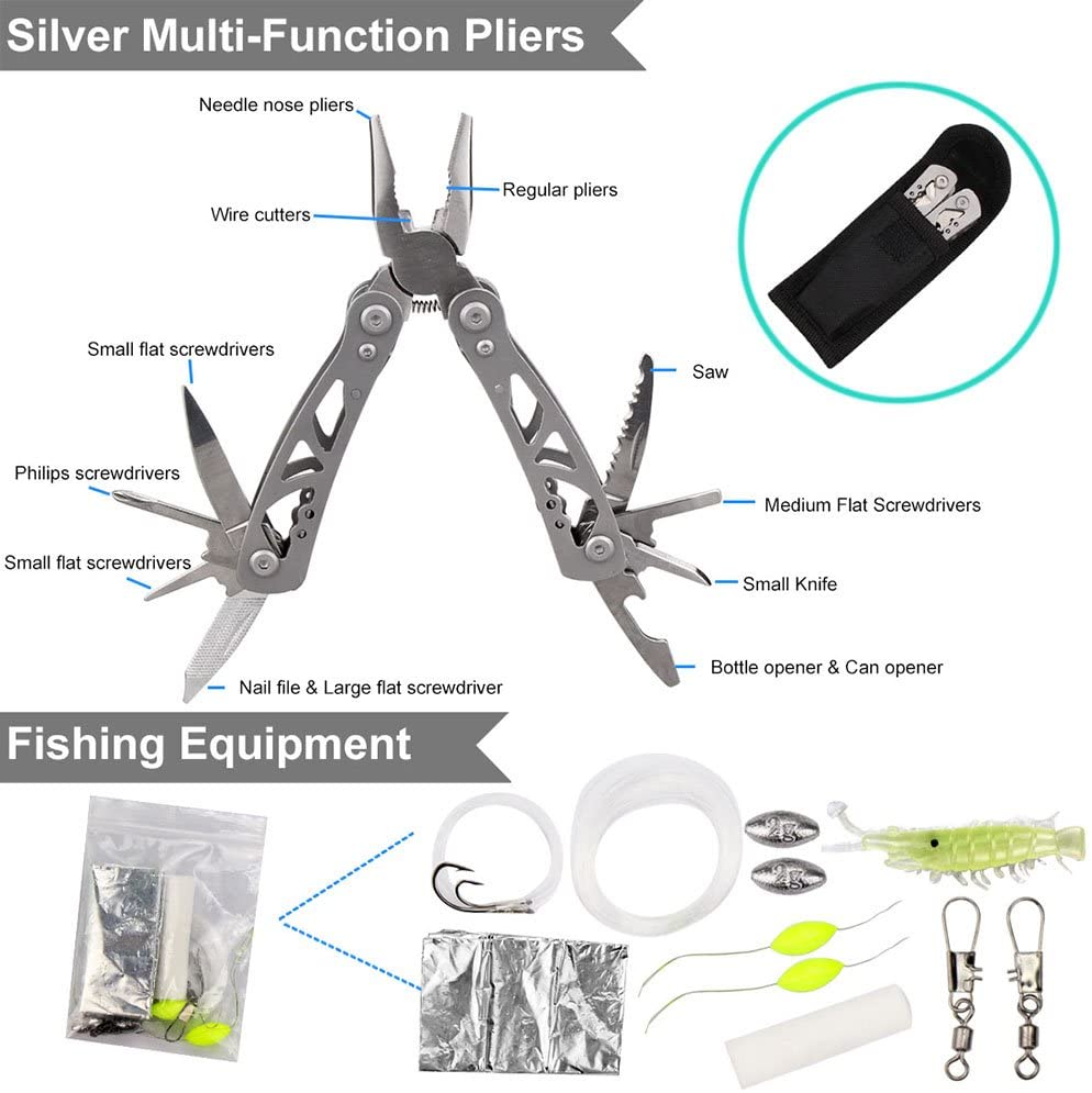 ਸ਼ਕਤੀਸ਼ਾਲੀ ਕੰਬੋ ਸੈੱਟ, 16 ਵੱਖ-ਵੱਖ ਅਦਭੁਤ ਸਰਵਾਈਵਲ ਟੂਲਜ਼ - ਮਲਟੀ-ਫੰਕਸ਼ਨ ਪਲੇਅਰਸ, ਟੈਕਟੀਕਲ ਫੋਲਡਿੰਗ ਚਾਕੂ, ਸਟੇਨਲੈੱਸ ਸਟੀਲ ਸਾਬਰ ਕਾਰਡ, ਐਮਰਜੈਂਸੀ ਬਲੈਂਕੇਟ, ਆਰਮੀ ਗ੍ਰੀਨ ਵਿਸਲ, ਕੰਪਾਸ ਕੀ-ਚੇਨ, ਫਾਇਰ ਸਟਾਰਟਰ, ਵਾਇਰ ਸਾ, ਟੈਕਟੀਕਲ ਫਲੈਸ਼ਲਾਈਟ, ਸ਼ਾਮਲ ਹਨ। , ਫਿਸ਼ਿੰਗ ਵੇਟ, ਫਿਸ਼ਿੰਗ ਹੁੱਕ, ਸਵਿਵਲ, ਫਲੋਟਸ, ਐਲੂਮੀਨੀਅਮ ਫੋਇਲ, ਦਾਣਾ, ਫਿਸ਼ਿੰਗ ਸੈੱਟ ਬਾਹਰੀ ਭੋਜਨ ਦੀ ਭਾਲ ਕਰਨ ਦੀ ਸਮੱਸਿਆ ਨੂੰ ਹੱਲ ਕਰ ਸਕਦਾ ਹੈ, ਜੋ ਤੁਹਾਡੀਆਂ ਵੱਖੋ ਵੱਖਰੀਆਂ ਜ਼ਰੂਰਤਾਂ ਨੂੰ ਪੂਰਾ ਕਰ ਸਕਦਾ ਹੈ!
